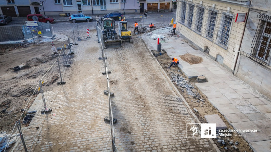 W ul. Koński Kierat wykonywana jest kanalizacja teletechniczna a w obrębie ul. Staromłyńskiej i placu Orła Białego – regulacja studni, wpustów i skrzynek.