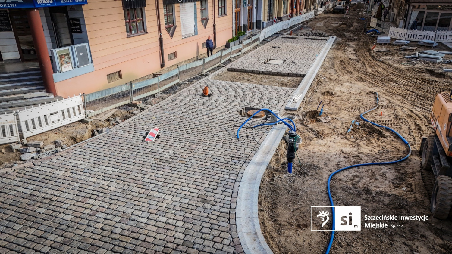 – Wykonawca kontynuuje układanie nawierzchni z płyt kamiennych, kostki wraz z podbudowami. Równolegle prowadzone są prace przy montażu murków i krawężników granitowych oraz korytek odpływowych. Nie mniej ważne są roboty podziemne. Pod powierzchnią placu biegną już nowe kable oświetleniowe, energetyczne i teletechniczne – relacjonuje rzecznik prasowy miasta ds. inwestycji Piotr Zieliński.