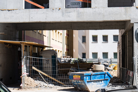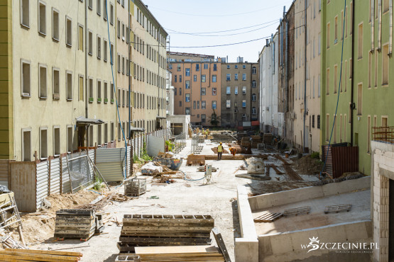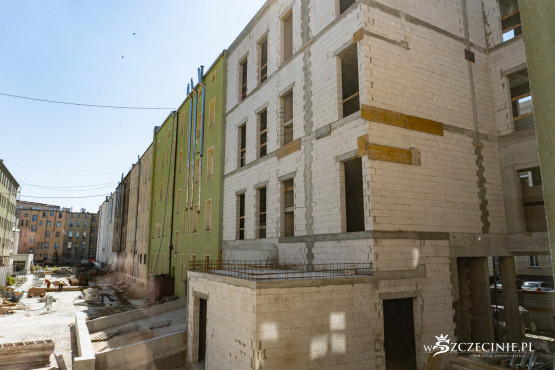Obecnie ekipa generalnego wykonawcy skupia się na pracach murarskich w budynku usługowo-mieszkalnym. Równolegle prowadzone są roboty przy budowie nowego obiektu z usługami, rozbudowie budynku biurowego Szczecińskiego TBS oraz przy podziemnym parkingowcu, tak bardzo wyczekiwanym przez zmotoryzowanych mieszkańców Śródmieścia.