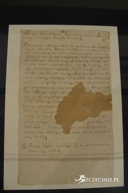 Pretekstem do zaprezentowania tak różnorodnych, tak cennych eksponatów związanych z osobą Stanisława Leszczyńskiego, była przypadająca w tym roku 300. rocznica pobytu Króla Polski, Wielkiego Księcia Litwy oraz Księcia Lotaryngii – i jego rodziny na szczecińskim Zamku (na elewacji południowego skrzydła Zamku wisi pamiątkowa tablica). Znajdziemy na wystawie eksponaty związane z rodziną królewską (żoną Katarzyną, córką Marią, królową Francji) oraz osobami, które odegrały istotną rolę w życiu króla. Kurator polecała zwrócić szczególną uwagę na rękopisy, choćby na taką perełkę jak list Augusta II, w którym gratulował Leszczyńskiemu objęcia tronu czy listy córki Marii do ojca. Ponadto na wystawie obejrzeć możemy obrazy olejne, miniatury (gwasz, akwarela), medaliony, kamee, medale, rzemiosło artystyczne, stroje, tapiserie, manuskrypty.