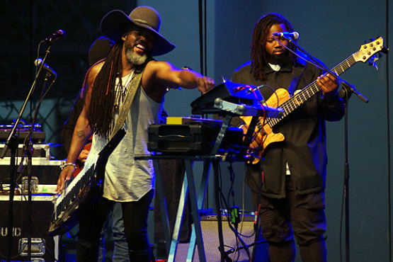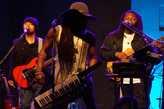 Od początku występu przede wszystkim skupiał na sobie uwagę widzów Benjamin, wyróżniający się jamajską fryzurą, kapeluszem i znaczącą posturą. Nie tylko grał na saksofonie, ale urozmaicał utwory swoimi wokalizami, posługując się wokoderem. Zainteresowanie publiczności „przechodziło” też na innych muzyków, bo każdy z nich, to instrumentalista wysokiej klasy, a były takie momenty, a wszyscy mieli tego dnia szansę na indywidualny popis. Ja szczególnie zapamiętałem bardzo soczyste, rockowe solo gitarowe Seversona (jedynego białego w tym składzie) w jednym z utworów, a widzowie co chwila nagradzali aplauzem któregoś z członków RGE.