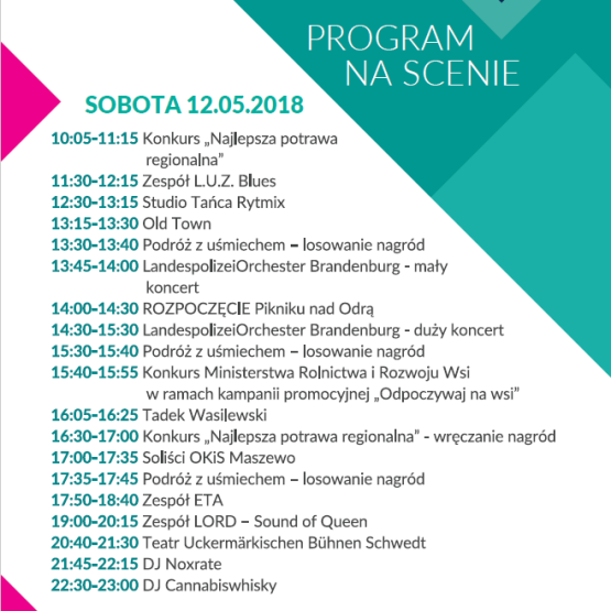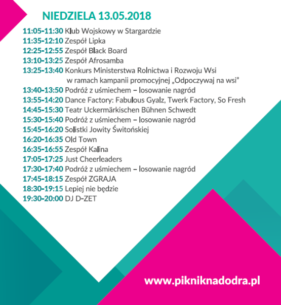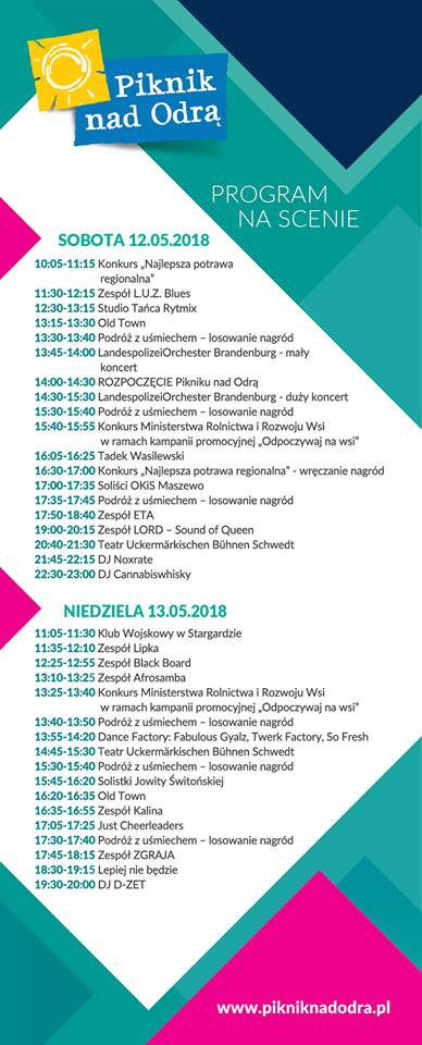 Będzie to już 27. edycja Pikniku nad Odrą. Imprezę można odwiedzać w sobotę w godz. 10:00-23:00 oraz niedzielę od 11:00 do 20:00. Wstęp jest bezpłatny.