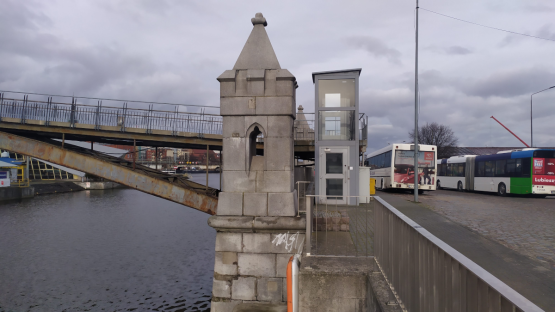 Historyczną ciekawostką są zdobione wieżyczki, które można zobaczyć przy nabrzeżu. To zachowany wschodni przyczółek dawnego Mostu Dworcowego. Zwodzoną przeprawę wybudowano w tym miejscu w 1900 roku. 45 lat później została wysadzona przez wycofujące się wojska niemieckie.