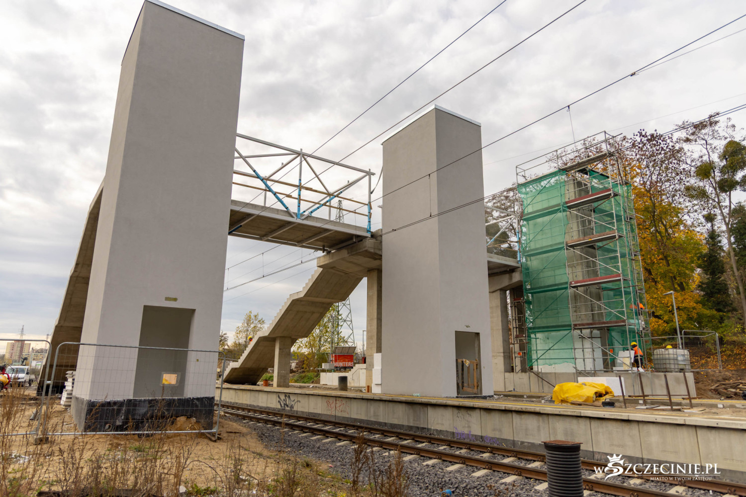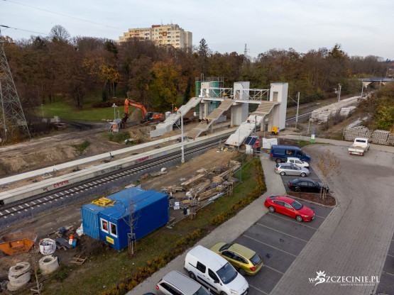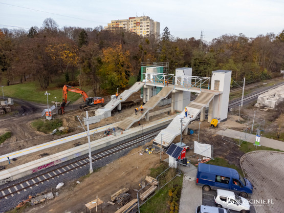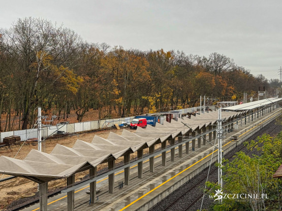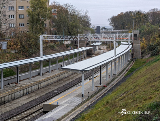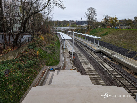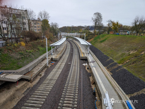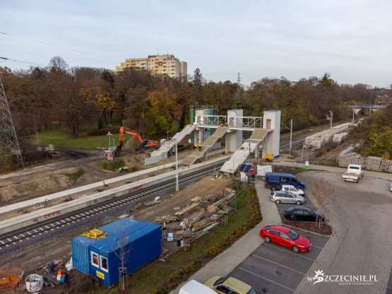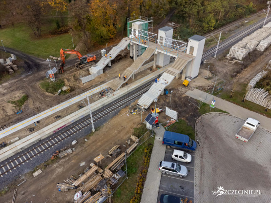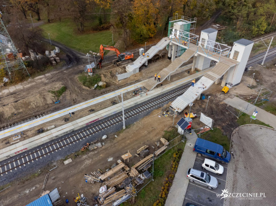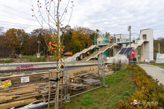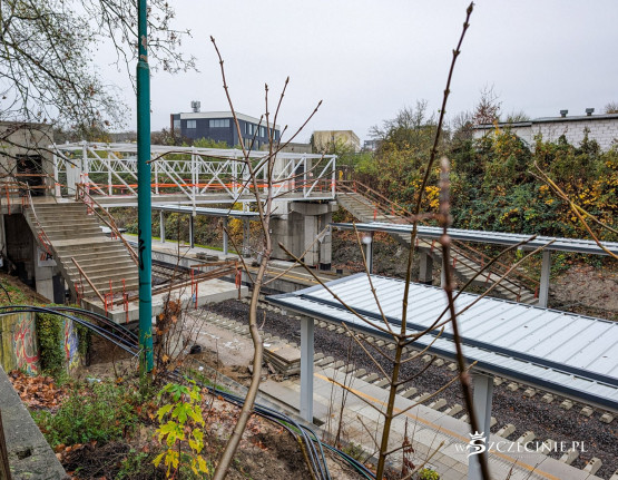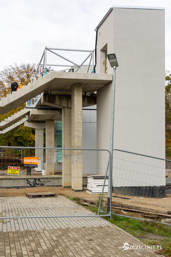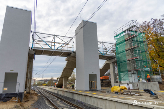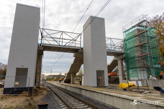 Na przystanku Szczecin Pogodno gotowa jest winda oraz schody, które poprowadzą z wiaduktu od strony ul. Mickiewicza. Wykonawca prowadzi prace przy nowej kładce dla pieszych, z której pasażerowie będą mogli dostać się na stadion Pogoni albo do parku Noakowskiego.