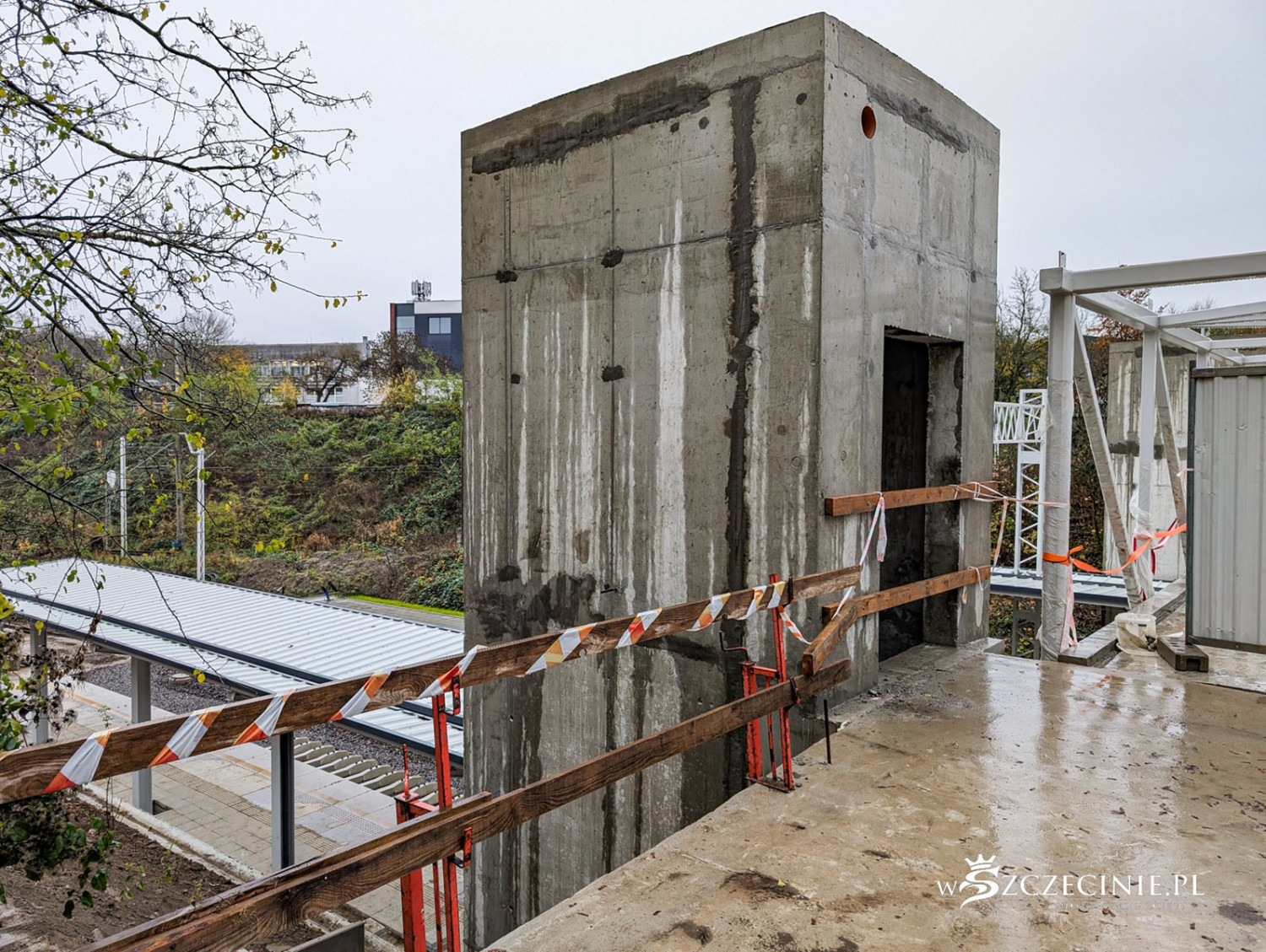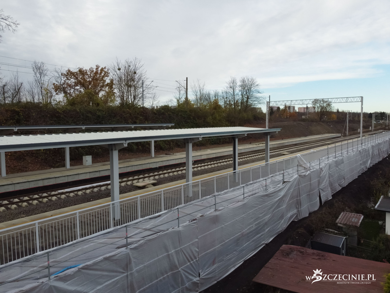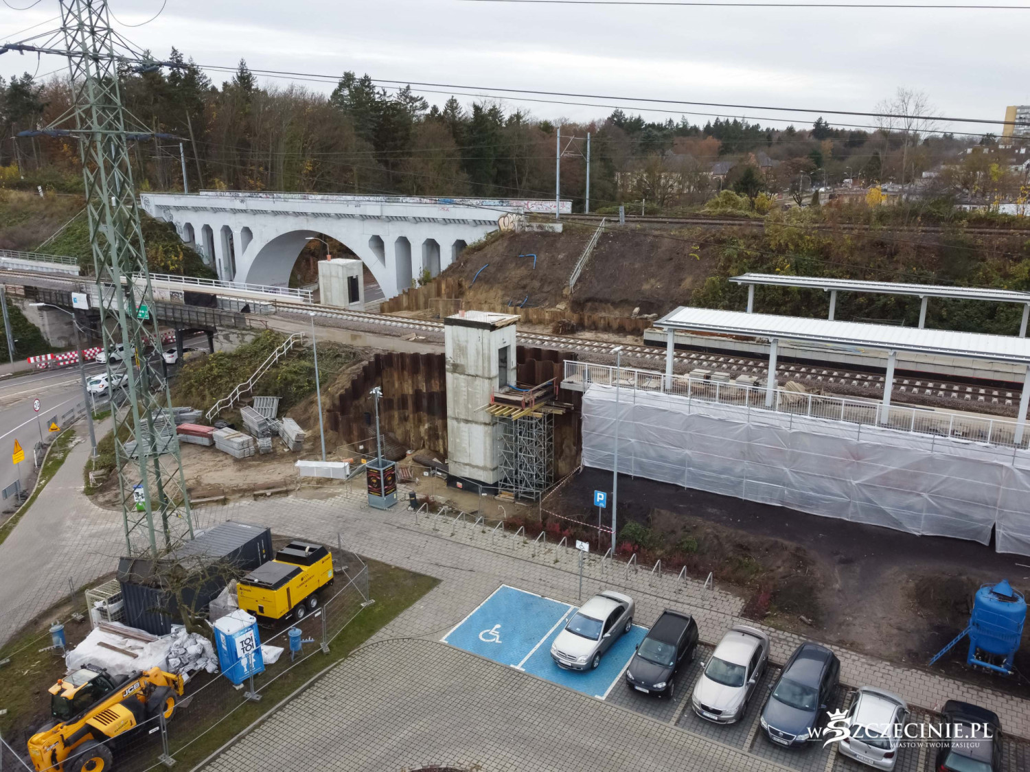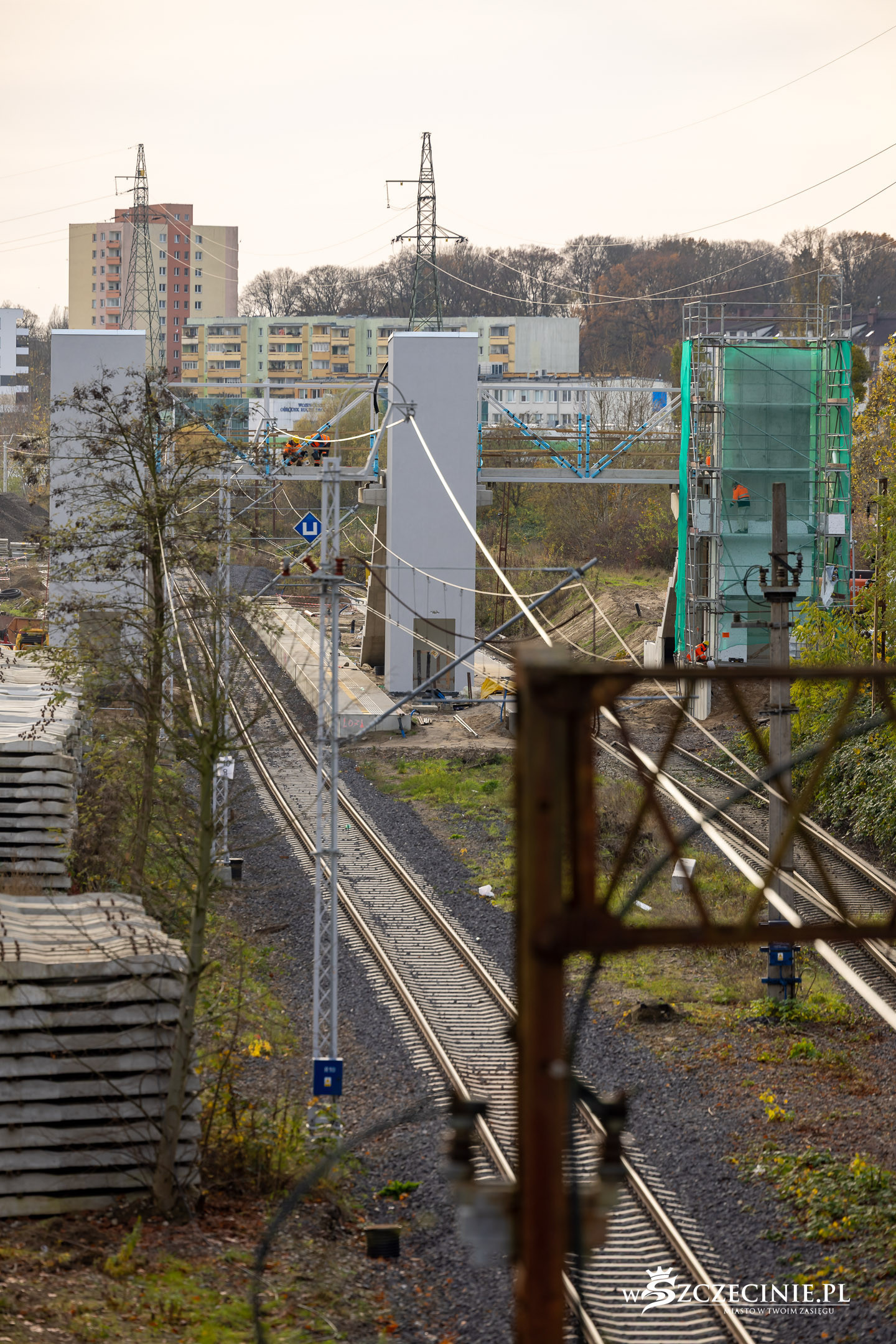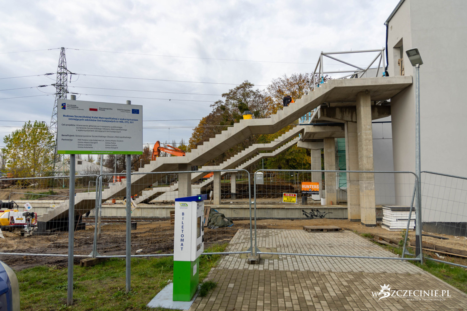 Na przystanku Szczecin Pogodno gotowa jest winda oraz schody, które poprowadzą z wiaduktu od strony ul. Mickiewicza. Wykonawca prowadzi prace przy nowej kładce dla pieszych, z której pasażerowie będą mogli dostać się na stadion Pogoni albo do parku Noakowskiego.