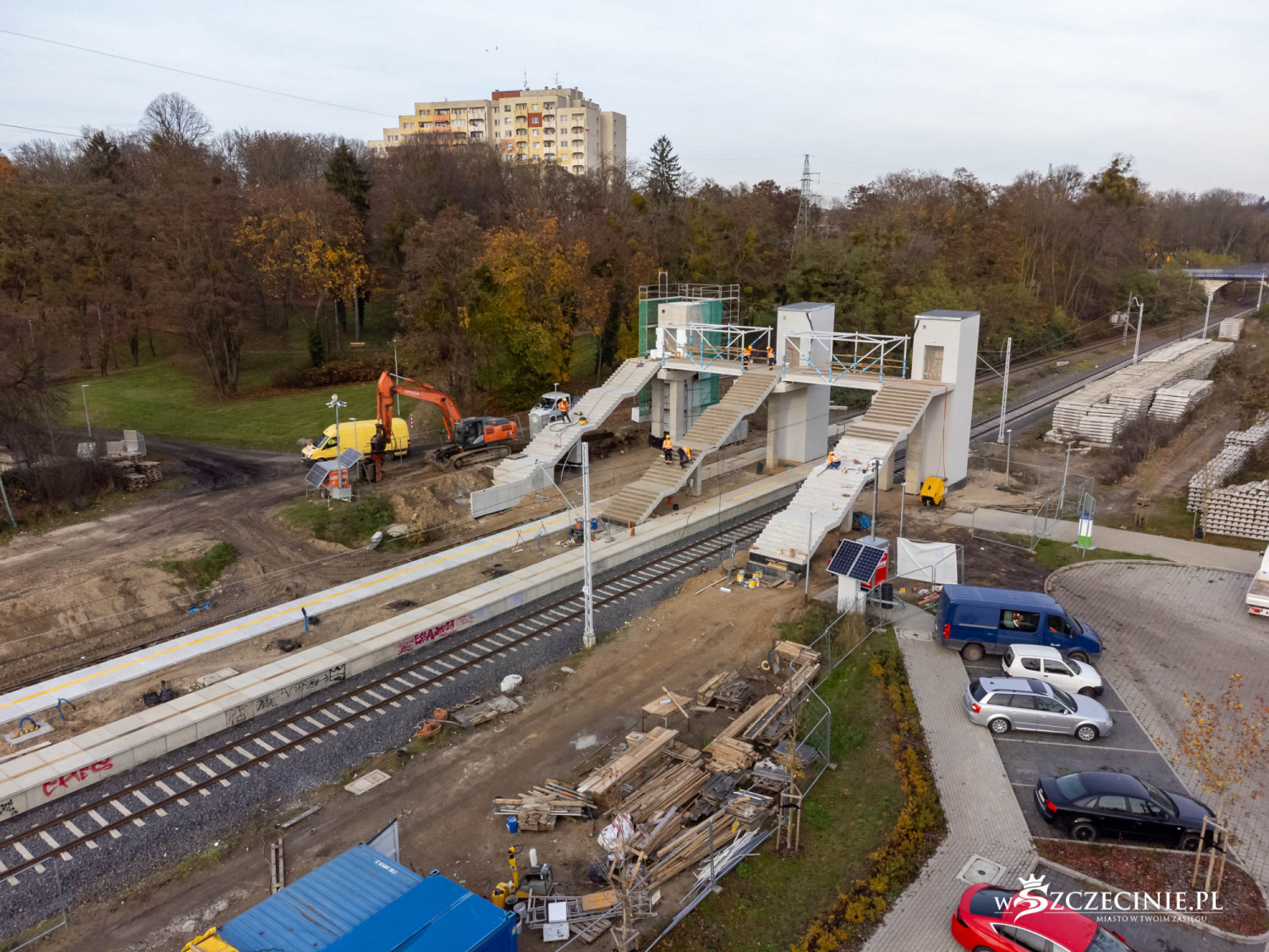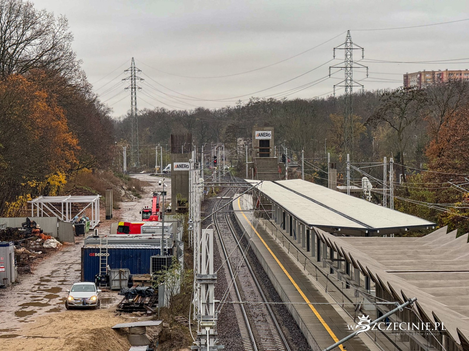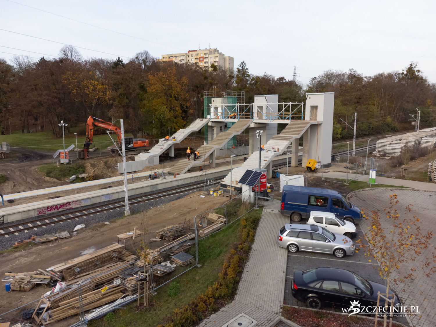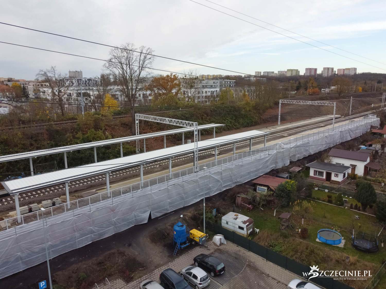 Na przystanku Szczecin Pogodno gotowa jest winda oraz schody, które poprowadzą z wiaduktu od strony ul. Mickiewicza. Wykonawca prowadzi prace przy nowej kładce dla pieszych, z której pasażerowie będą mogli dostać się na stadion Pogoni albo do parku Noakowskiego.