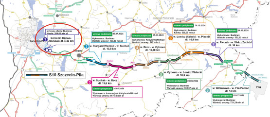 Wcześniej szczeciński oddział Generalnej Dyrekcji Dróg Krajowych i Autostrad rozstrzygnął przetargi na siedem innych odcinków S10 między Szczecinem a Piłą. W poniedziałek podpisano z firmą Budimex umowę na realizację ostatniego fragmentu, który stanie się jednocześnie nowym wjazdem do miasta od strony Stargardu.