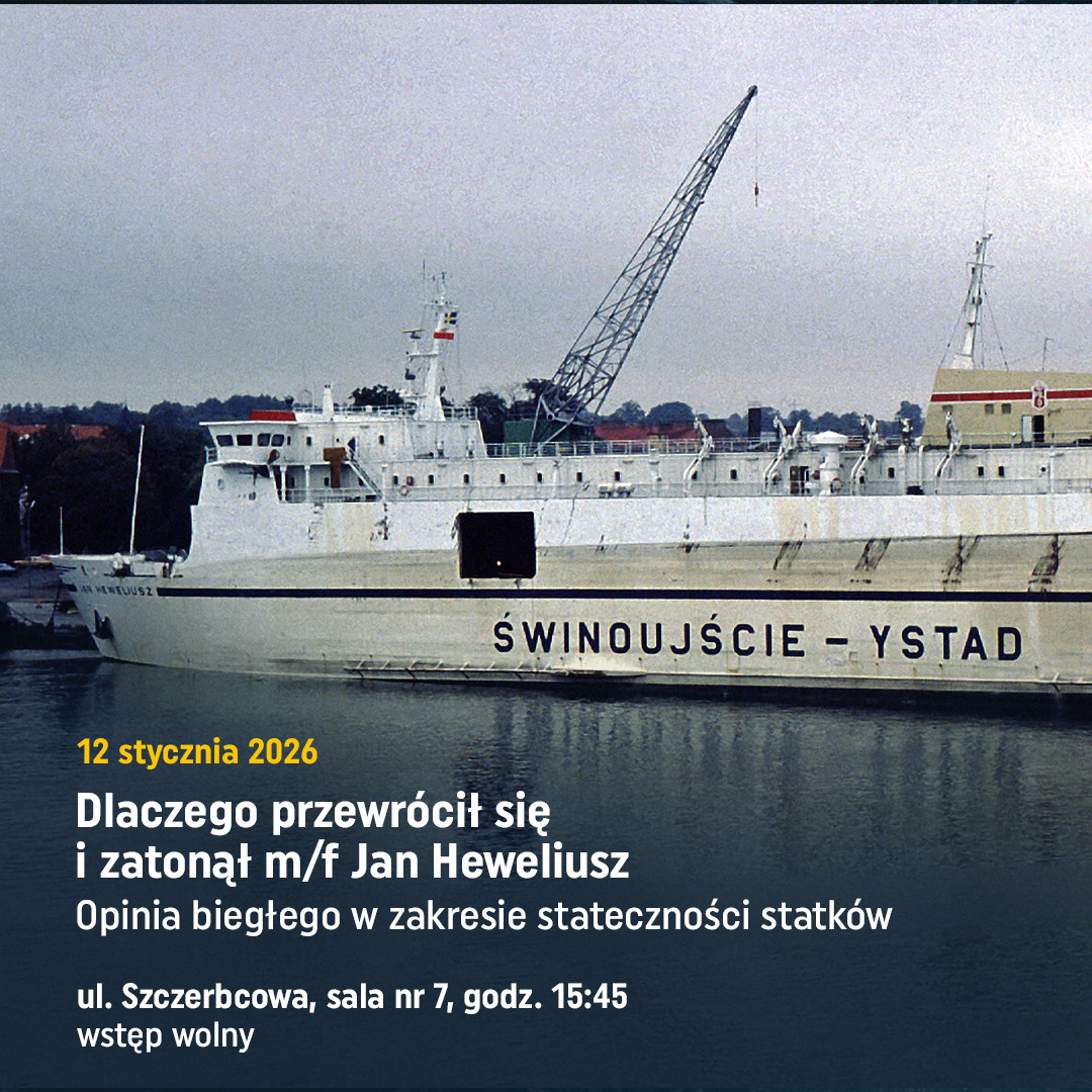 Politechnika Morska w Szczecinie zaprasza do wzięcia udziału w wykładzie pt. „Dlaczego przewrócił się i zatonął m/f Jan Heweliusz. Opinia biegłego w zakresie stateczności statków”.