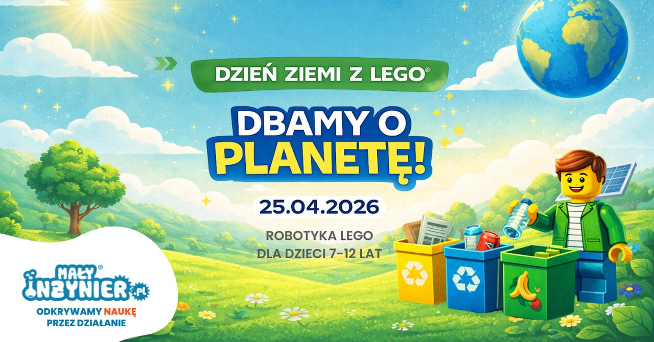 Robot, który pomaga zadbać o planetę? Tak właśnie będzie! Z okazji Dnia Ziemi Mały Inżynier zaprasza dzieci (7-12 lat) na wyjątkowe warsztaty robotyki LEGO EV3, podczas których zbudują i zaprogramują robota sprzątającego.