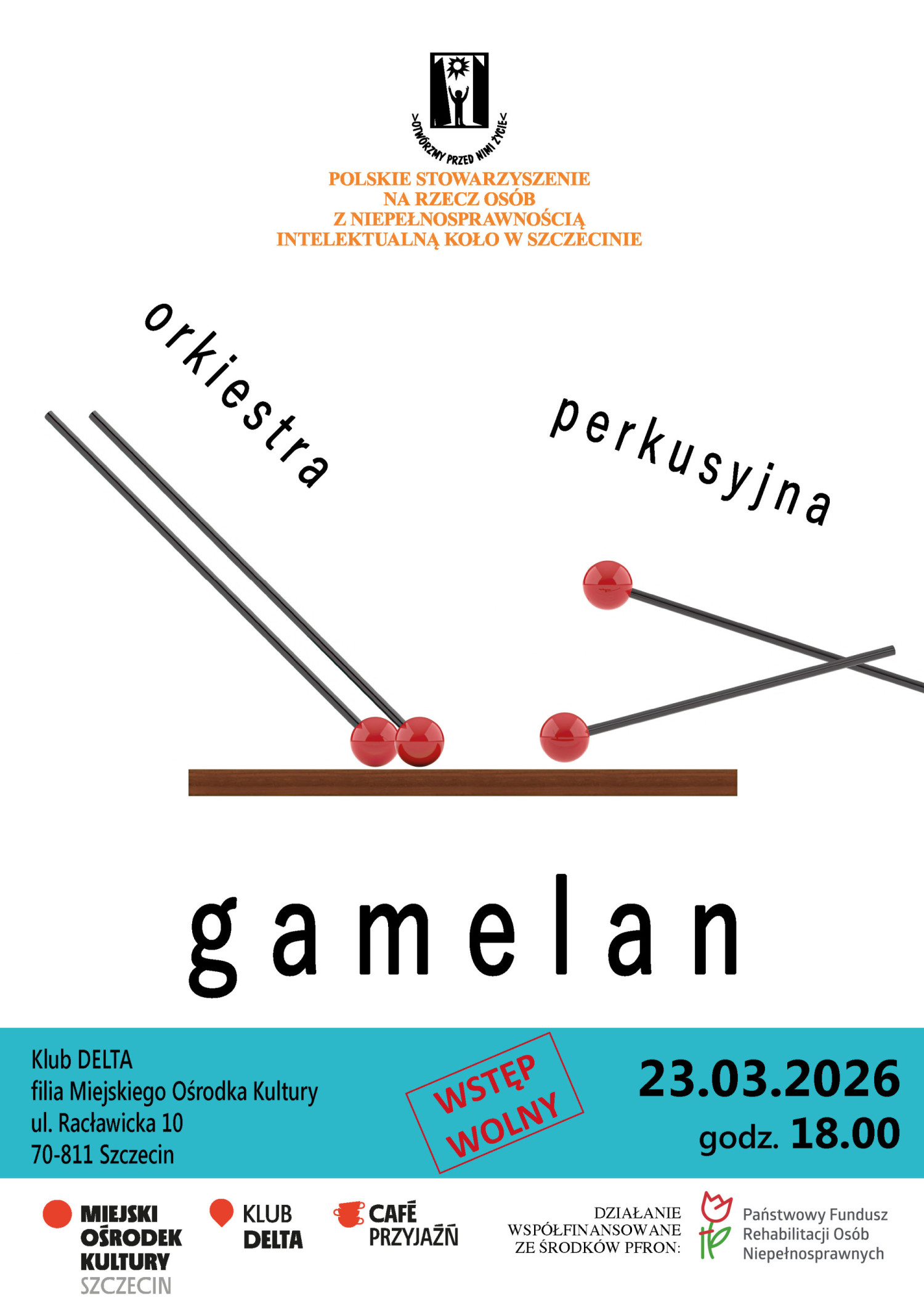 PSONI Koło w Szczecinie serdecznie zaprasza koncert jedynej w Polsce Orkiestry Perkusyjnej Gamelan działającej w Polskim Stowarzyszeniu na rzecz Osób z Niepełnosprawnością Intelektualną Koło w Szczecinie.