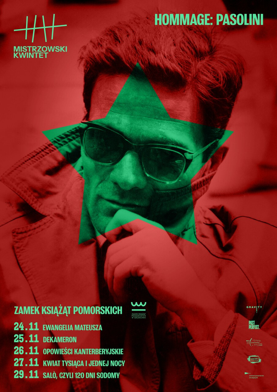 Od czarno-białej, ascetycznej opowieści o życiu Jezusa (wzbogaconej muzyką Bacha, Prokofiewa i amerykańskim bluesem) do radykalnej wizji piekła na ziemi w Salo, MISTRZOWSKI KWINTET uwypukla skrajności, dzięki którym Pasolini pozostaje tak fascynujący i intryguje kolejne pokolenia widzów. Sercem przeglądu jest nieobecna niemal na polskich ekranach Trylogia życia, czyli „Dekameron” (1971), „Opowieści kanterberyjskie” (1972) oraz „Kwiat tysiąca i jednej nocy” (1974): zanurzona w średniowiecznej literaturze, barwna, ludyczna i zmysłowa celebracja ludzkiej cielesności oraz potrzeby zmysłowej miłości, z muzyką Ennia Morricone i scenografią Dante Ferrettiego („Wiek niewinności”, „Kasyno”, „Gangi Nowego Jorku”).