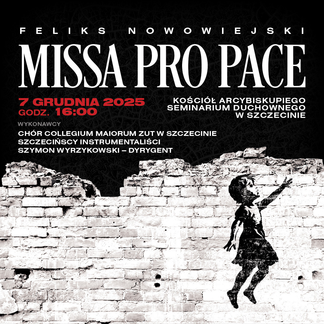 Powstała w 1931 roku msza była pierwszą na świecie kompozycją napisaną w intencji pokoju. Dzieło to, skomponowane oryginalnie na chór mieszany i organy, będzie tym razem wykonane w wersji zorkiestrowanej przez Chór Collegium Maiorum ZUT w Szczecinie oraz orkiestrę symfoniczną pod dyrekcją Szymona Wyrzykowskiego. Orkiestracja została opracowana w 2018 roku przez zaprzyjaźnionego z chórem profesora Frederika Schwenka z Hamburga.