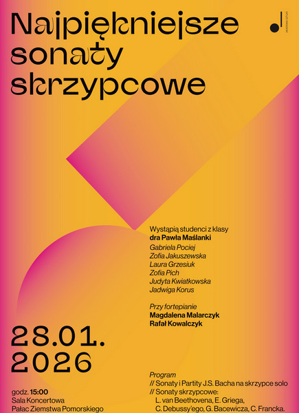 W koncercie wezmą udział studenci Wydziału Instrumentalnego z Katedry Instrumentów Smyczkowych i Kameralistyki, z klasy dra Pawła Maślanki: