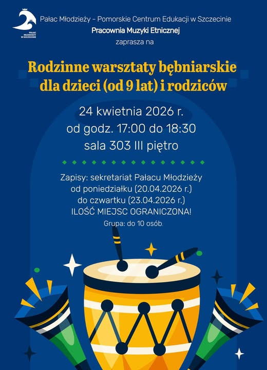 Pracownia Muzyki Etnicznej zaprasza na rodzinne warsztaty bębniarskie dzieci od 9. roku życia wraz z rodzicami.