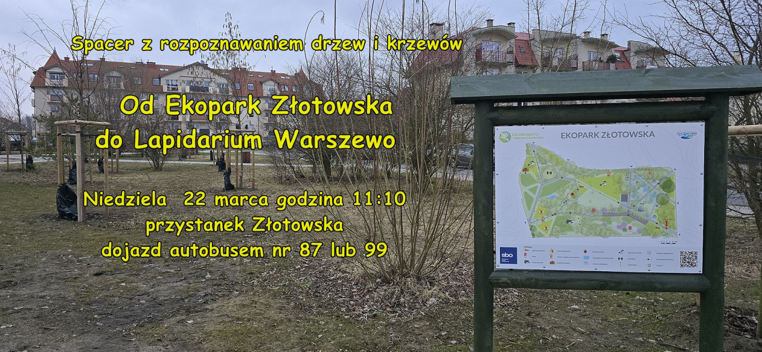 Podczas spaceru przyjrzymy się młodym nasadzeniom klonów, lip, jarzębów czy olch. Niektóre z nich już zaczynają kwitnąć, inne mają jeszcze pozostałe z jesieni elementy umożliwiające rozpoznanie gatunków. Z parku przejdziemy terenem szkoły, przyglądając się między innymi kwitnącej kalinie wonnej, licznym berberysom, kalinom i irgom. Spacer zakończymy na terenie dawnego warszowskiego cmentarza dzisiaj zamienionego w lapidarium. Tam z kolei zobaczymy sporo starych, dużych drzew, bliskich rozmiarami drzewom pomnikowym. Będą lipy, dęby, kasztanowce, sporo zakwitających już klonów jesionolistnych, cisy, buki i graby. Po leżących na ziemi zeschniętych liściach odnajdziemy również kasztan jadalny. Spacer zakończymy przy przystanku autobusowym. Spacer jak zawsze jest bezpłatny, choć mile widziane będą drobne datki dla prowadzącego.
