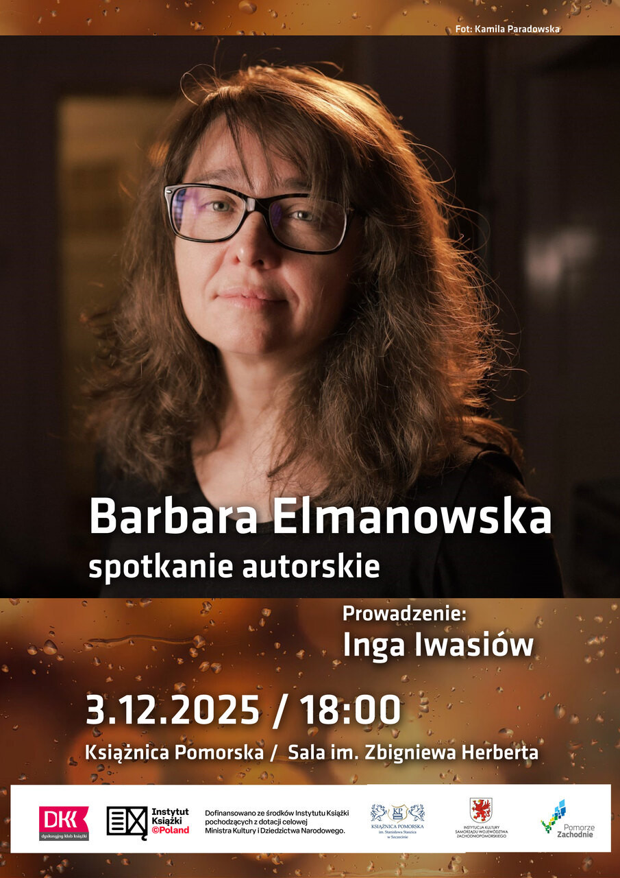 Książnica Pomorska i Instytut Książki zapraszają na spotkanie autorskie z Barbarą Elmanowską w ramach Dyskusyjnych Klubów Książki, poprowadzi Inga Iwasiów.