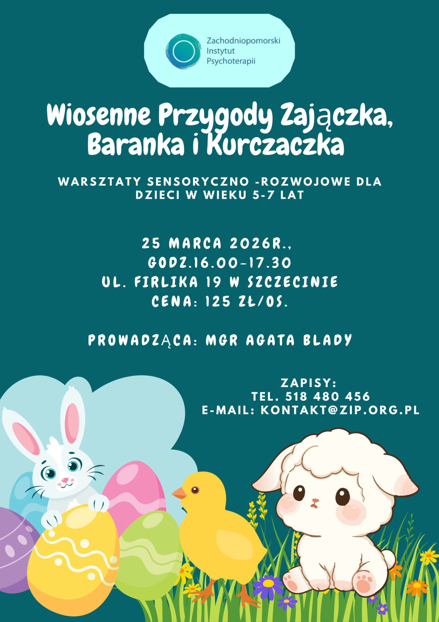 Podczas spotkania wyruszymy w pełną przygód podróż do świata emocji. Towarzyszyć nam będą trzej wyjątkowi bohaterowie: Uważny Zajączek, Spokojny Baranek i Pogodny Kurczaczek. To właśnie oni – poprzez opowieści, zabawy i ćwiczenia – pokażą dzieciom, jak oswajać trudne emocje, jak zauważać sygnały płynące z ciała oraz jak odnajdywać spokój w codziennych sytuacjach.