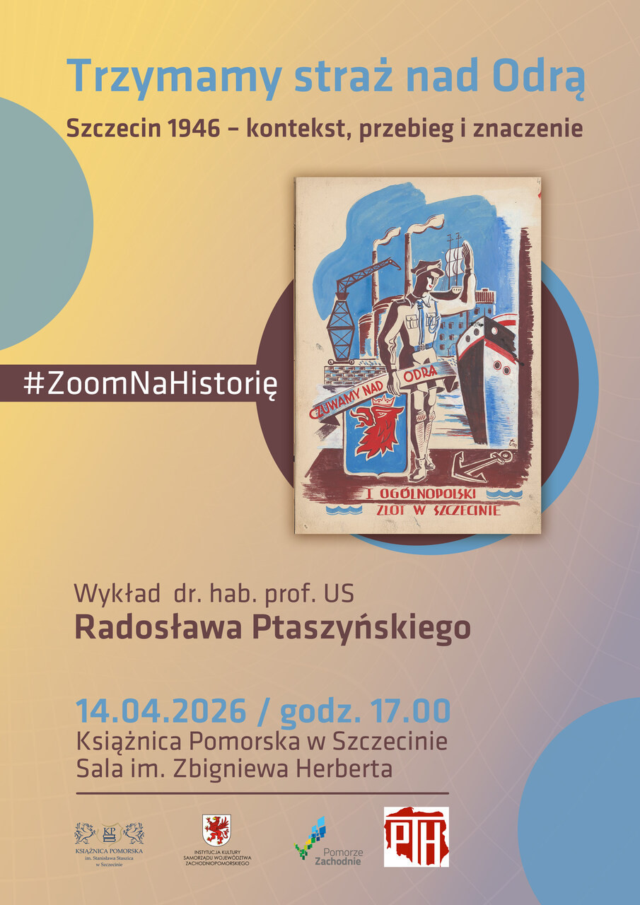 Spotkanie z dr. hab. prof. US Radosławem Ptaszyńskim poświęcone będzie zlotowi „Trzymamy straż nad Odrą", który odbył się w Szczecinie w 1946 roku i należał do ważnych wydarzeń pierwszych miesięcy polskiej obecności na Pomorzu Zachodnim. Wykład przybliży kontekst organizacji zlotu, jego przebieg oraz znaczenie polityczne i symboliczne w pierwszych latach po zakończeniu II wojny światowej.