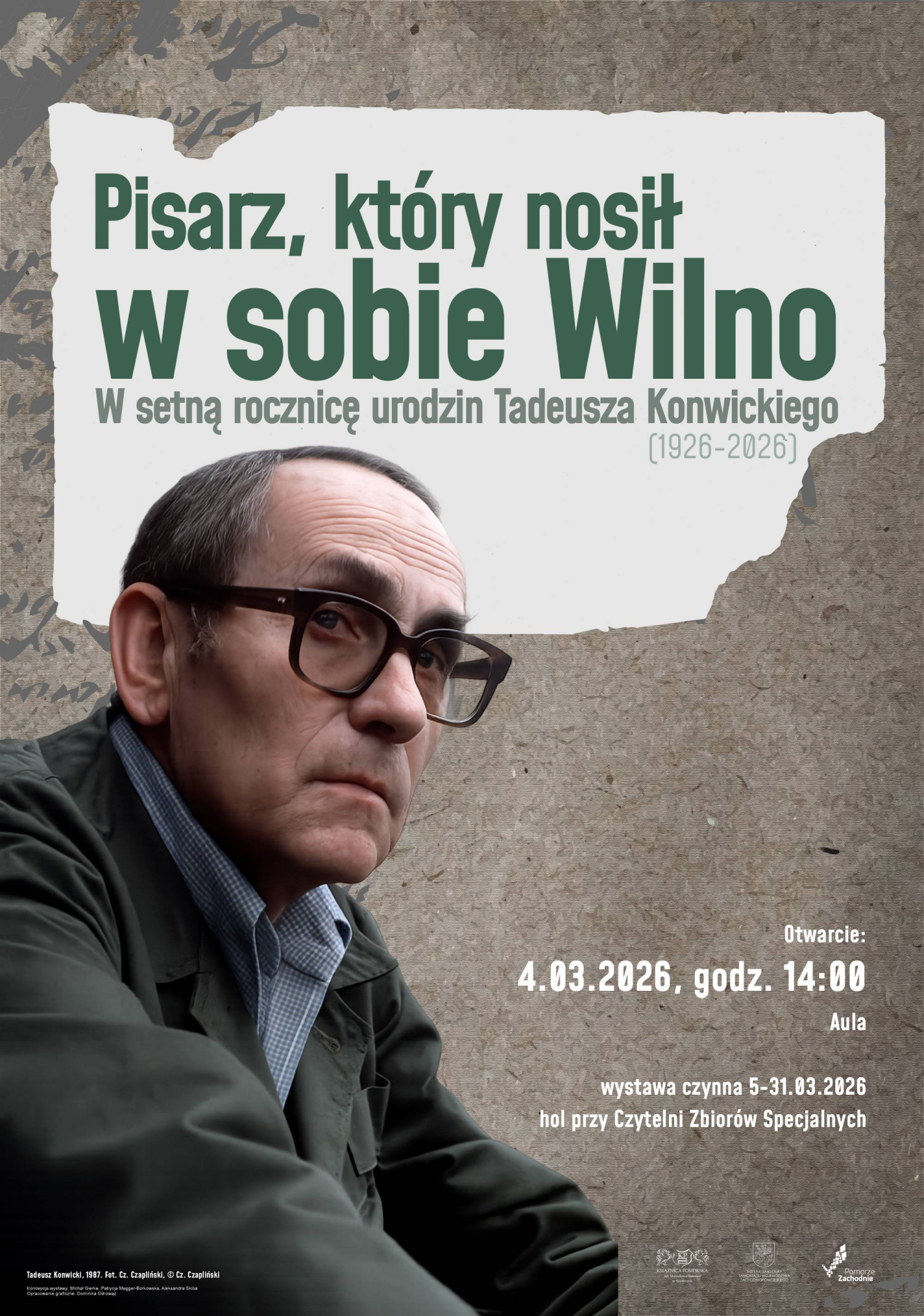Książnica Pomorska i Stowarzyszenie Przyjaciół Wilna, Ziemi Wileńskiej, Nowogródzkiej i Polesia „Świteź” zapraszają na otwarcie wystawy „Pisarz, który nosił w sobie Wilno. W 100. rocznicę urodzin Tadeusza Konwickiego (1926-2026)”. Wydarzenie to zainauguruje 37. Tydzień Kresowy w Szczecinie, czyli tradycyjne „Kaziuki”.