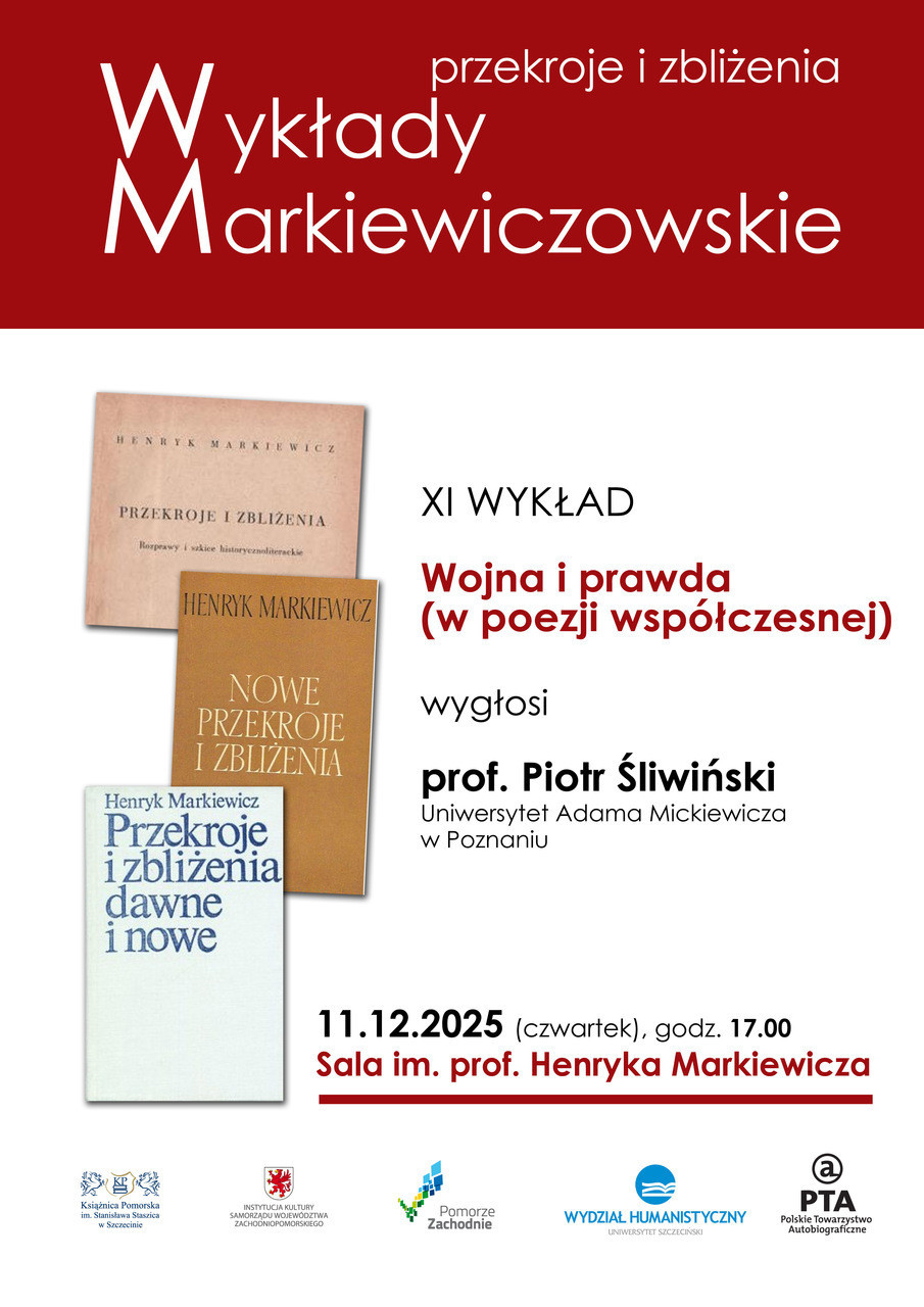 Kolejny wykład cyklu wygłosi prof. dr hab. Piotr Śliwiński, literaturoznawca, krytyk literacki i badacz polskiej poezji współczesnej, pracownik naukowy Uniwersytetu Adama Mickiewicza w Poznaniu. Zaproponowany przez tegorocznego prelegenta temat nawiązuje do rozległych zainteresowań i wielkiego dorobku prof. Henryka Markiewicza. Zagadnienie prawdy w literaturze było Profesorowi bliskie, a doświadczenia wojenne przechowywał w pamięci i pewnych domowych rytuałach do końca życia.
