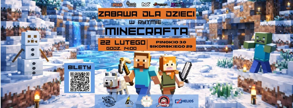 Każdy uczestnik stworzy minecraftowy atrybut, który zabierze do domu. Energetyczne zabawy taneczne prowadzone przez instruktorów ze szkoły tańca All About Dance