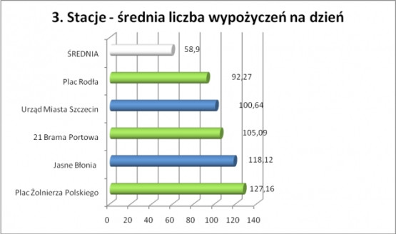Najpopularniejsza stacja znajduje się na placu Żołnierza Polskiego (średnio 127 wypożyczeń dziennie). Ponad 100 razy dziennie wypożyczane są też rowery na stacjach przy Jasnych Błoniach, Bramie Portowej i Urzędzie Miasta Szczecin.