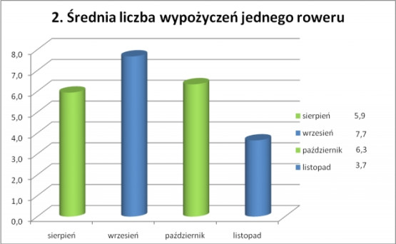 Najczęściej rowerem miejskim pokonywane są kilkukilometrowe odcinki (pierwsze 20 minut za darmo). Aż 89 % wypożyczeń mieści się w tym limicie.