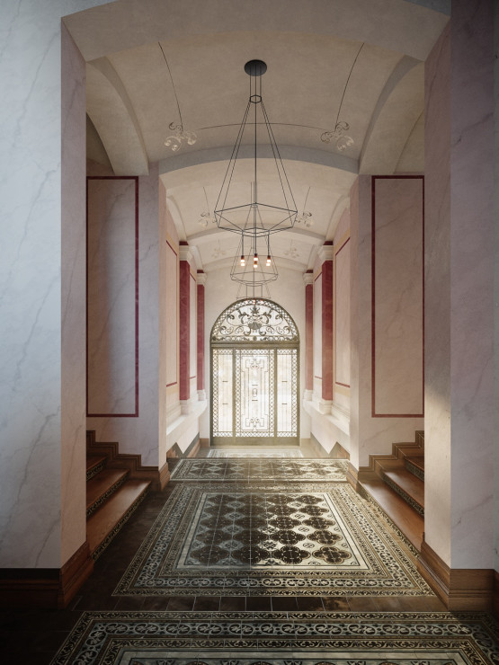 Odnowiona zostanie elewacja frontowa „z detalami architektonicznymi nawiązującymi do form barokowych”. Renowacja obejmie też bramę wejściową i obie zabytkowe klatki schodowe z masywnymi rzeźbionymi tralkami, wielobarwną ceramiką na posadzkach oraz pozłacanymi kompozycjami malarskimi na ścianach.