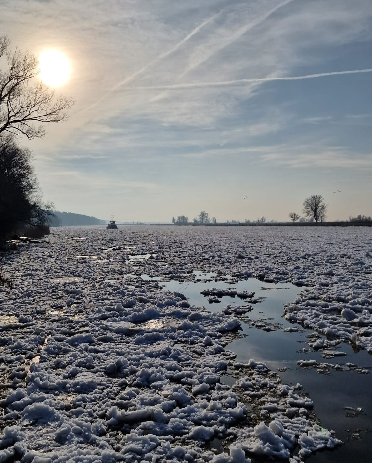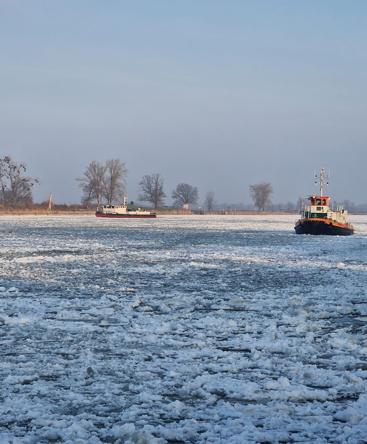 Akcja lodołamania została przerwana wraz z nadejściem tęgich mrozów. Prace zostały wznowione we wtorek rano. Lodołamacze wyruszyły z bazy w Podjuchach w kierunku jeziora Dąbie, Regalicy, Odry Wschodniej oraz Granicznej.