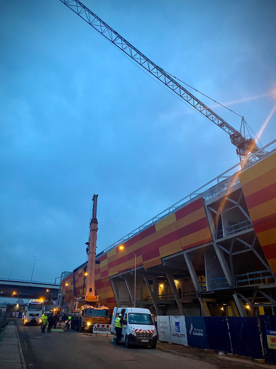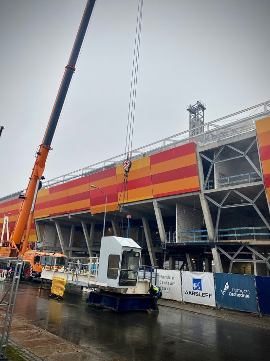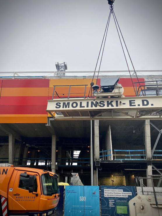 – Żuraw został właśnie rozebrany przez specjalistów z firmy E.D. Smoliński. Brak dźwigów na budowie oznacza, że zbliża się moment zakończenia prac konstrukcyjnych. Budowlańcy wieszają wówczas na szczycie budynku symboliczną wiechę – informuje Jarosław Dobrzyński, rzecznik prasowy MCN.