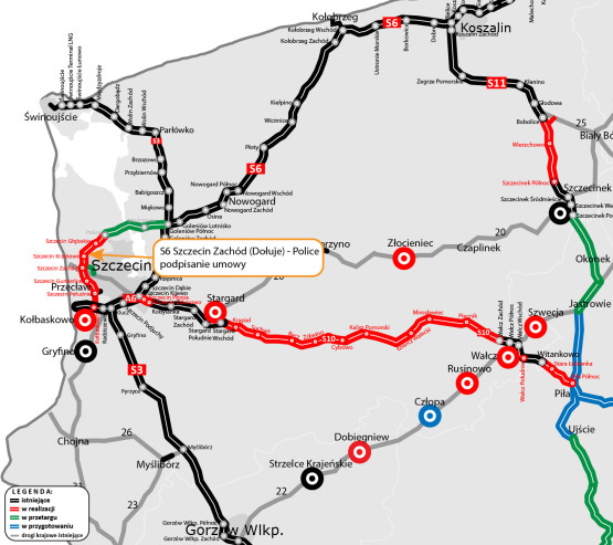 Zachodnia Obwodnica Szczecina ma zmienić oblicze turystyki i gospodarki w regionie i być jednocześnie odcinkiem drogi ekspresowej S6. Całość podzielono na 3 etapy: Kołbaskowo–Dołuje (gdzie trwają już prace), Dołuje–Police oraz Police–Goleniów.