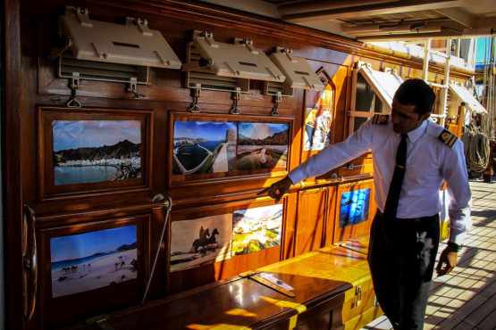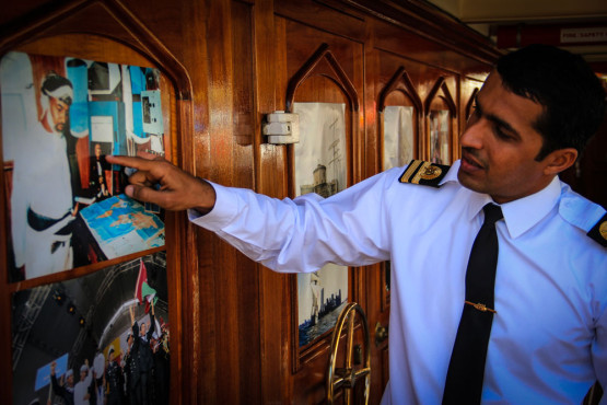 Członkowie omańskiej załogi oprowadzają nie tylko po pokładzie. Opowiadają w języku angielskim o historii jednostki, ale również historii jej poprzednika. W różnych punktach szkoleniowego żaglowca Marynarki Wojennych Omanu rozwieszone są zdjęcia przedstawiające ten przepiękny kraj leżący na Półwyspie Arabskim.