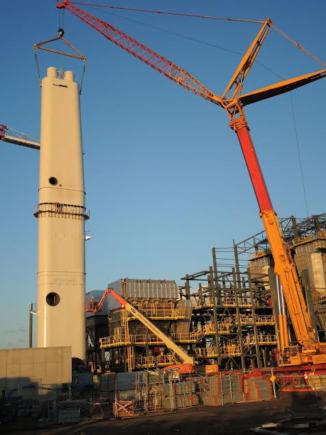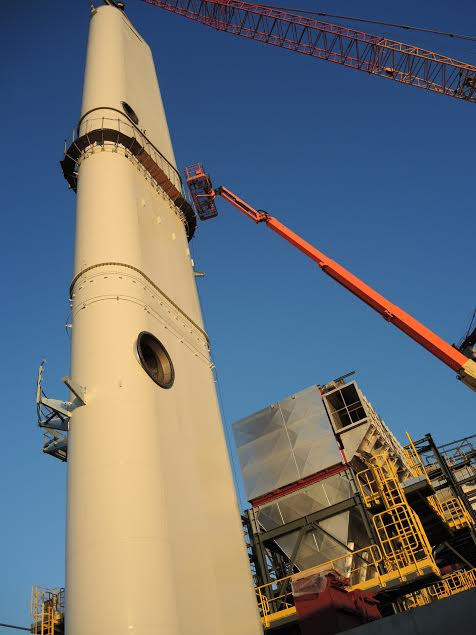 Sam montaż komina zajął trzy dni. Prace rozpoczęły się w sobotę rano. Po zamontowaniu pierwszej sekcji zostały przerwane ze względu na wiatr, wiejący z prędkością powyżej 10 m/s. Drugą sekcję udało się zamontować w niedzielę około godziny 11:00, kiedy na krótki czas prędkość wiatru zmniejszyła się do około 5m/s. Prace związane z montażem ostatniej części zakończono w poniedziałek około 08:00.