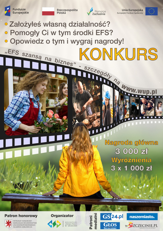 Filmy nagrane specjalnie na potrzeby konkursu „EFS szansą na biznes” należy dostarczyć do siedziby WUP w terminie od 1 kwietnia do 15 maja 2019 roku. W krótkim nagraniu w ciekawy i inspirujący sposób trzeba zaprezentować swoją działalność i opowiedzieć jak EFS wpłynął na decyzję o założeniu własnego biznesu, wprowadzając wielkie zmiany w życiu. Filmik przygotować można samemu lub korzystając ze wsparcia innych osób.