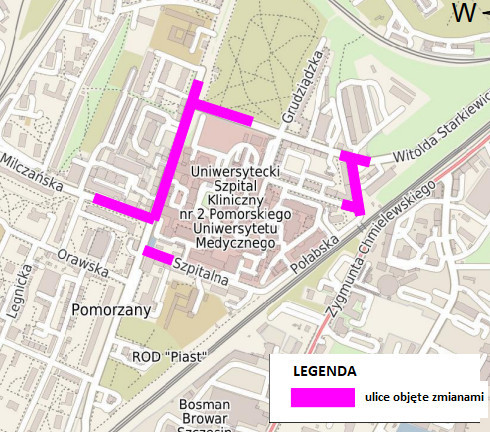 Nie będzie możliwości przejazdu między ulicami Milczańską a Szpitalną. W zamian otwarty zostanie fragment Al. Powstańców Wielkopolskich między Milczańską i Starkiewicza.