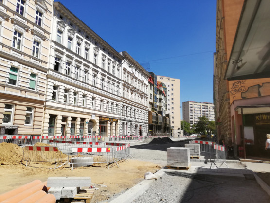 - Na zamkniętym odcinku wykonano już wpusty uliczne wraz z podłączeniem do kanalizacji ogólnospławnej, ustawiono krawężniki i wykonano większość chodników. Wykonano także rozbiórki kostki kamiennej w korycie przyszłej jezdni, stabilizację wraz z warstwą kruszywa niezwiązanego. Obecnie wykonawca realizuje prace związane z budową przyłączy sanitarnych dla potrzeb STBS – informuje Hanna Pieczyńska, rzecznik prasowy ZDiTM.