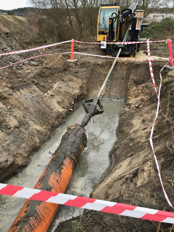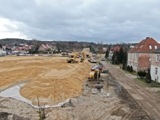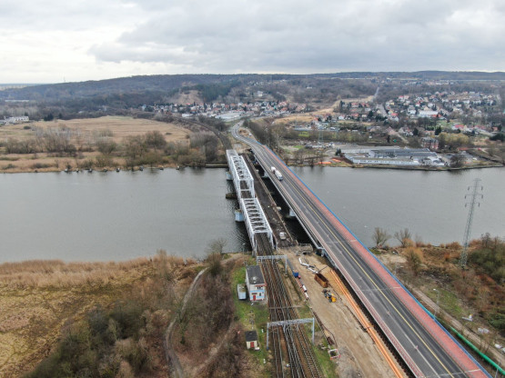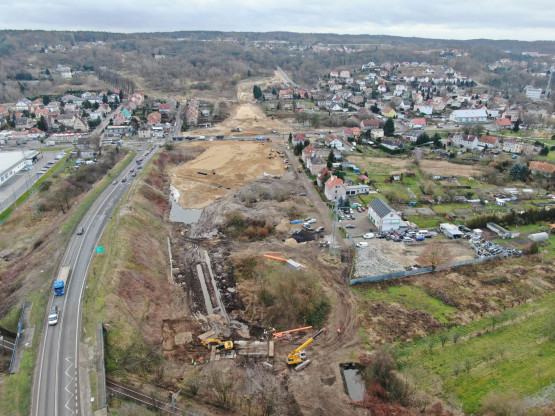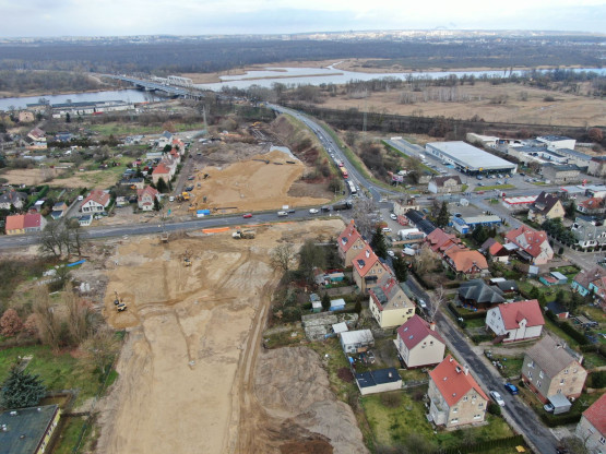 Obecnie trwa rozbiórka starego, zamkniętego od lat mostu, w miejscu którego stanie nowa przeprawa. Usypywane są nasypy drogowe. Wykonawca prowadzi tez prace przy budowie sieci gazowych, kanalizacyjnych i wodociągowych.