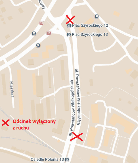 Mieszkańcy osiedla Polonia muszą teraz jeździć w stronę Pomorzan, a następnie Starkiewicza lub Milczańską.