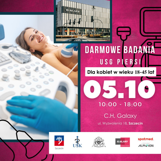 To badanie bezbolesne i nie wymaga żadnego przygotowania, a pozwala wykryć guzy złośliwe już we wczesnym stadium. Stowarzyszenie Fizjosport zaprasza w sobotę (05.10) do Galaxy Centrum na bezpłatne badania USG piersi.