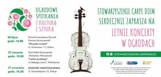 Stowarzyszenie Carpe Diem organizuje cykl bezpłatnych koncertów, które odbywają się w prywatnych ogrodach. Najbliższa okazja, by zanurzyć się w świat muzyki w wyjątkowym otoczeniu już w niedzielę, 30 lipca.