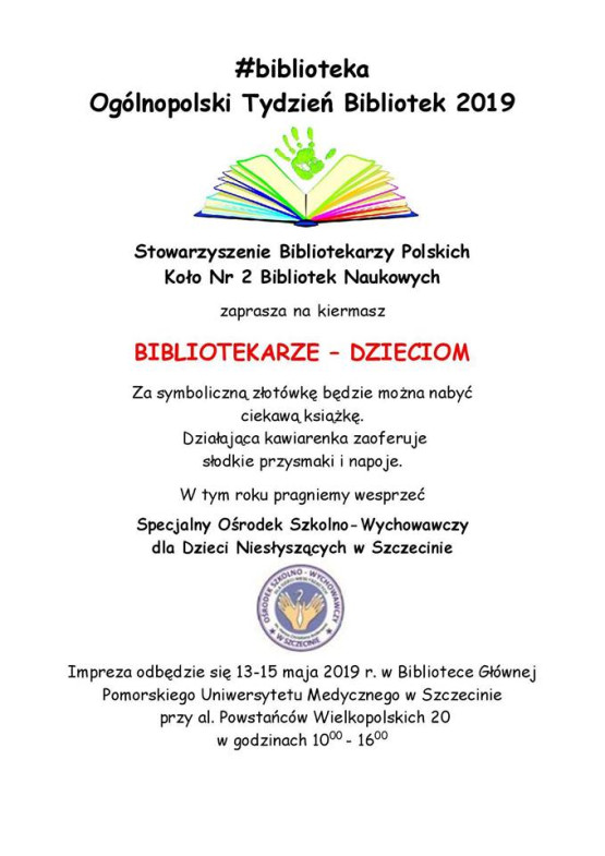 To wydarzenie organizowane przez Stowarzyszenie Bibliotekarzy Polskich Koło nr 2 Bibliotek Narodowych oraz Stowarzyszenie Progressum w ramach Ogólnopolskiego Tygodnia Bibliotek. Kiermasz rozpoczął się w poniedziałek (13 maja) i potrwa do najbliższej środy (15 maja). Można go odwiedzać w godz. 10:00-16:00.
