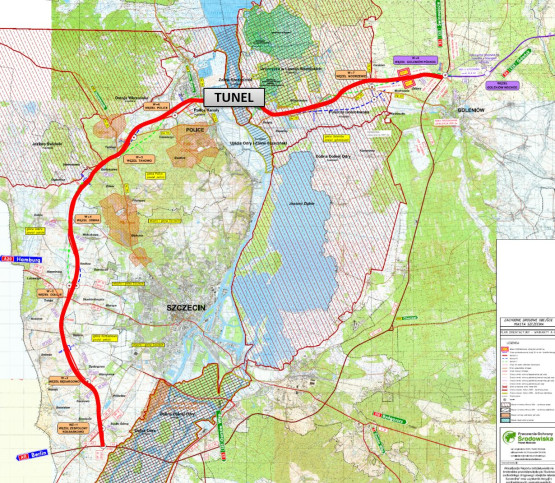 Wykonanie dokumentacji projektowej podzielono na dwie części. Pierwsza obejmuje odcinki Kołbaskwo – Dołuje i Dołuje – Police oraz węzeł Będargowo. Druga dotyczy odcinka Police - Goleniów, którego część stanowić będzie tunel pod Odrą.