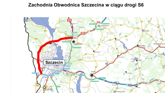 Ponad 50-kilometrowa zachodnia obwodnica ma rozpoczynać się w węźle Szczecin Zachód (A6) w pobliżu Kołbaskowa, od zachodu omijać Szczecin, od północy Police, a później przez 5-kilometrowy tunel pod Odrą poprowadzić w kierunku Goleniowa.