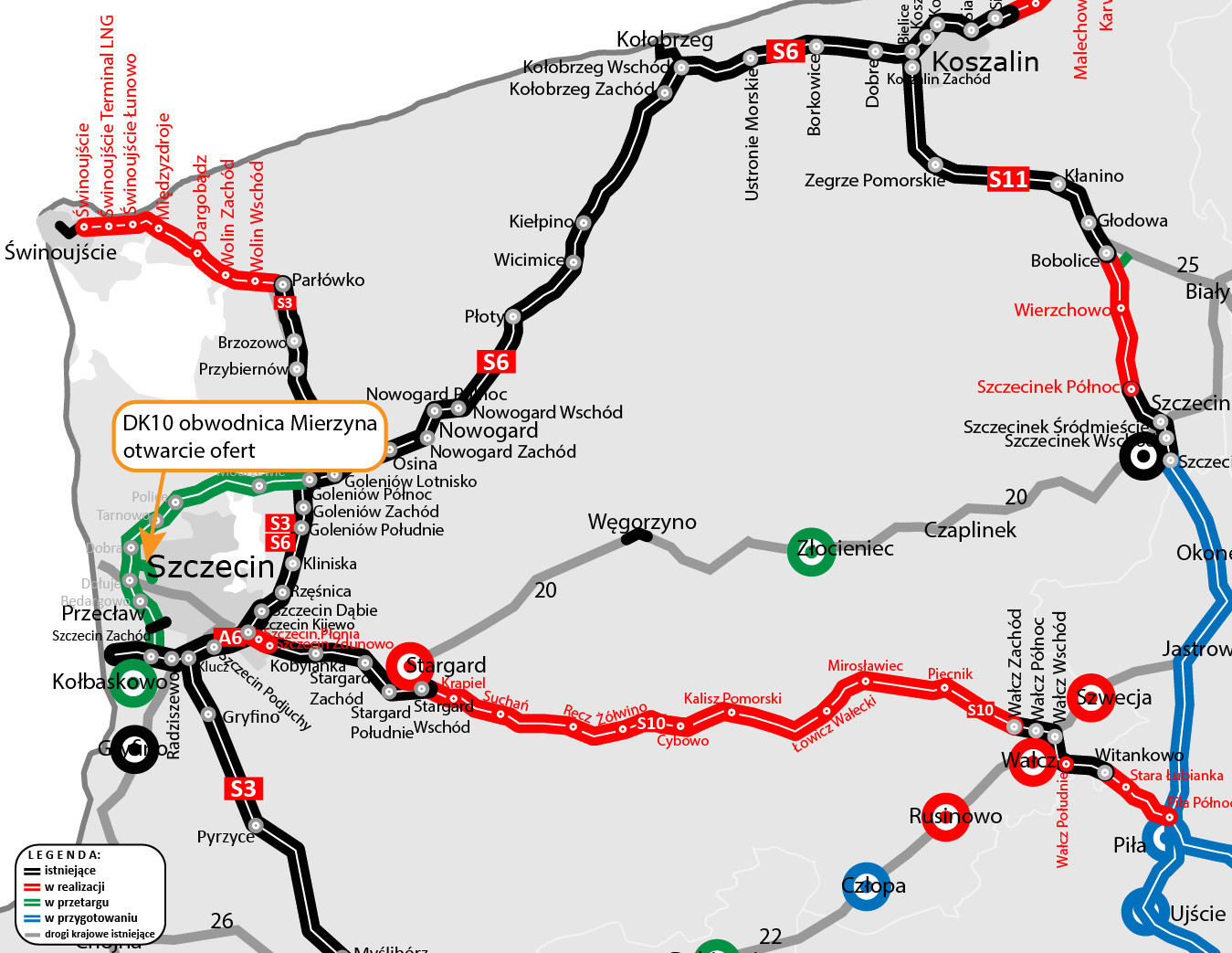 Obwodnica wyprowadzi ruch tranzytowy z Mierzyna i zapewni dojazd do planowanej Zachodniej Obwodnicy Szczecina (ZOS) w ciągu S6.