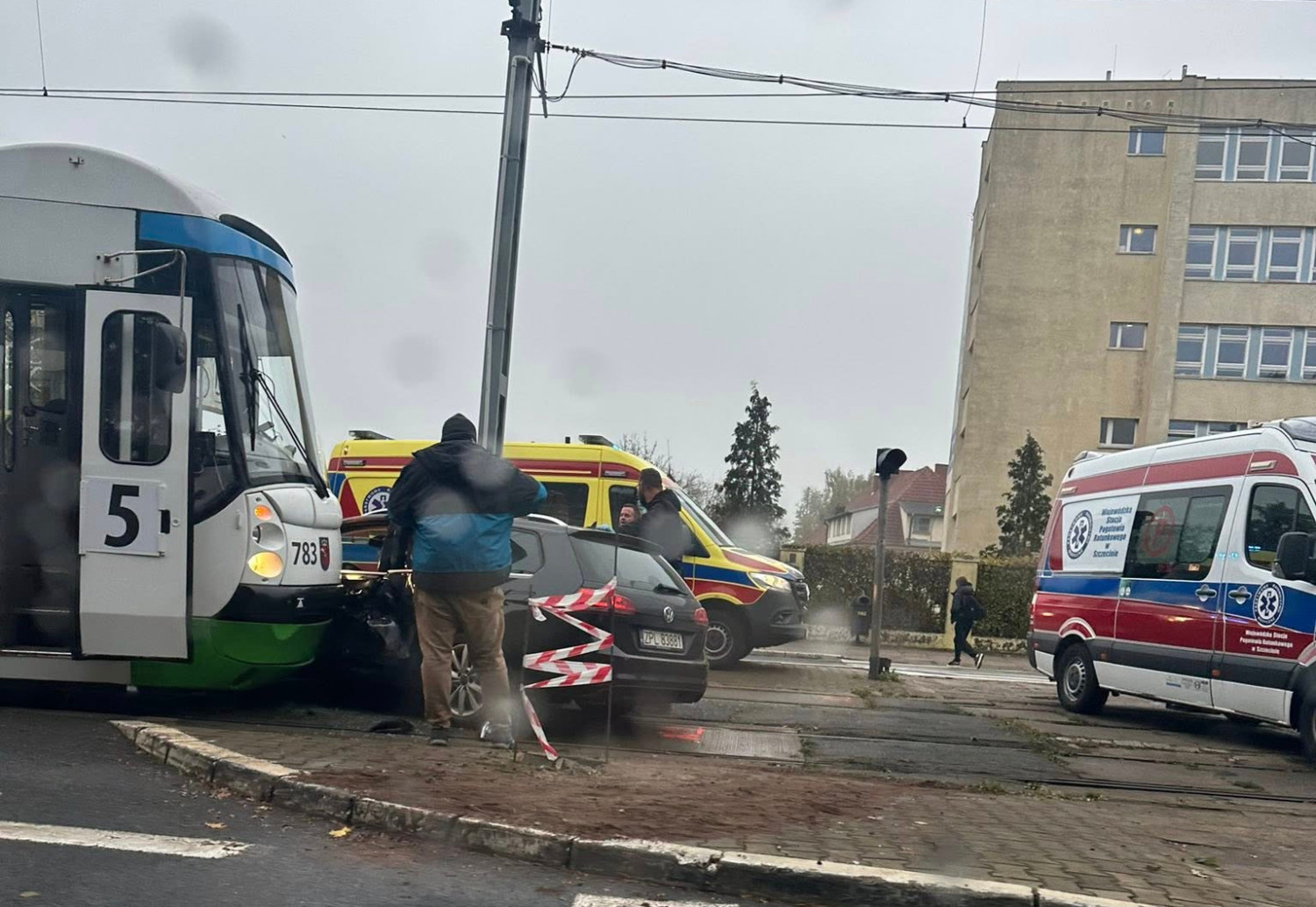 Po godz. 08:00 na torowisku w ciągu ul. Mickiewicza, w pobliżu skrzyżowania z ul. Twardowskiego, doszło do zderzenia tramwaju linii 5 z autem osobowym. Samochód zaklinował się między słupem a tramwajem.