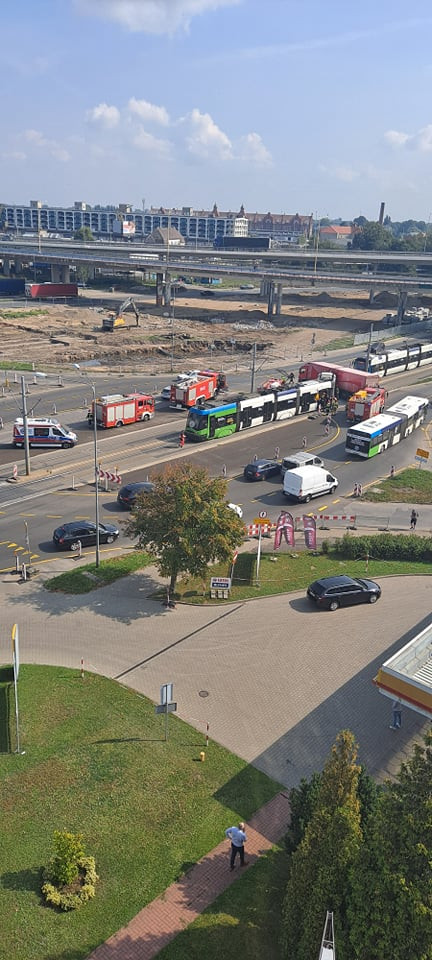 Zablokowane jest torowisko oraz po jednym pasie ruchu na jezdniach w obu kierunkach.