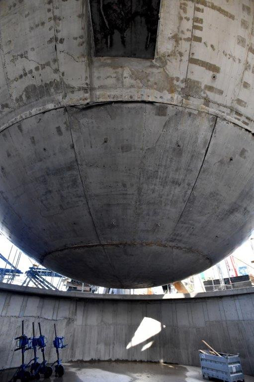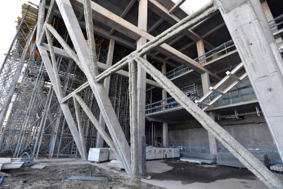 – Zdjęto szalunki podtrzymujące konstrukcję, dzięki czemu już widoczny jest efekt lewitującej kuli żelbetowej. Kula o średnicy 13 metrów podtrzymywana jest przez podciągi na 3 słupach – mówi Jarosław Dobrzyński.