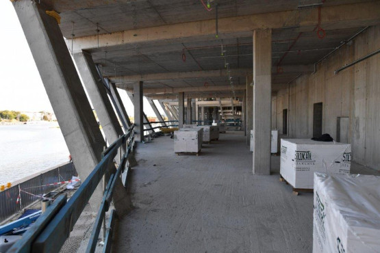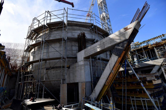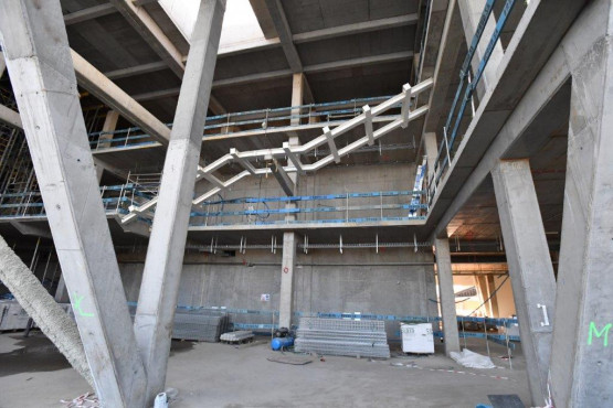 Wykonywane są zbrojenia trzonów budynku (klatki schodowe, szyby windowe, kanały różnych instalacji). Powstaje zewnętrzna klatka schodowa z windą. Montowana jest konstrukcja stalowa schodów ekspozycyjnych. Trwają prace związane z różnymi instalacjami, w tym systemu alarmowania pożarowego i dźwiękowego systemu ostrzegania. Układane są zbrojenia stropu nad drugim piętrem, w miejscu gdzie zaprojektowano taras widokowy.