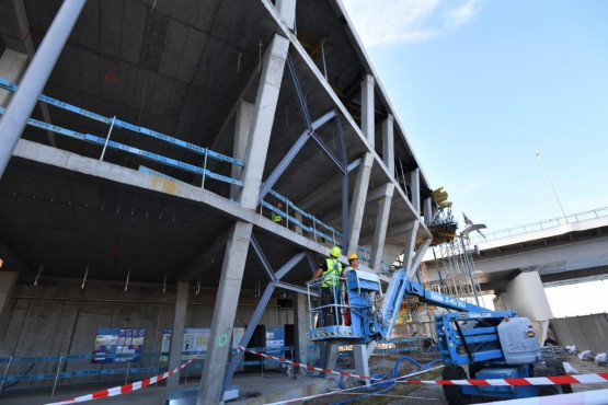 – Rozpoczęto układanie płyt elewacyjnych w 5 kolorach. Połączenia pionowe płyt będą ukrywane specjalnymi maskownicami. Następnie układana będzie podkonstrukcja pod siatkę cięto – ciągnioną, czyli zewnętrzną warstwę elewacji – informuje Jarosław Dobrzyński, rzecznik prasowy MCN.