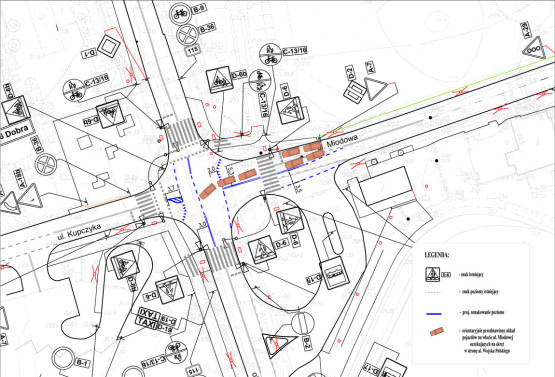 Jednocześnie zaplanowano dodatkową korektę oznakowania poziomego na wlocie ul. Miodowej. Jak przekonuje magistrat, ma to zwiększyć przepustowość skrzyżowania dla samochodów. – Pas ruchu zostanie tam poszerzony tak, aby możliwe było ustawienie pojazdów w dwóch rzędach, odpowiadających dalszemu kierunkowi jazdy – na wprost i w prawo lub w lewo – tłumaczy Łątka. – Dzięki temu pojazdy oczekujące na wykonanie manewru skrętu w al. Wojska Polskiego nie będą blokować pojazdów zmierzających w stronę ul. Kupczyka i ul. Zegadłowicza. Zmiana ta ma znacząco poprawić warunki przejazdu od strony ul. Miodowej – zaznacza.